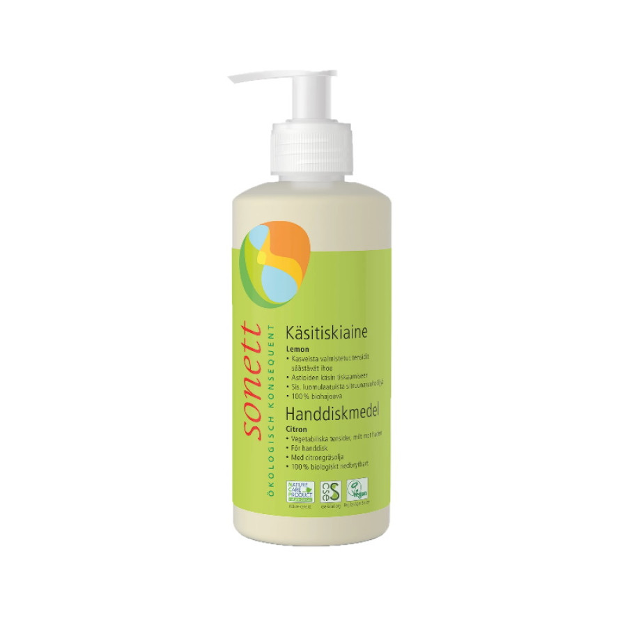 Sonett on todellinen ekologisten, ympäristöä säästävien pesu- ja puhdistusaineiden pioneeri. Tämäkään Sonett astianpesuaine ei siis sisällä keinotekoisia hajusteita, väriaineita eikä säilöntäaineita eikä myöskään entsyymejä, petrokemiallisia tensidejä eikä valkaisua voimistavia kirkasteita. Geeni- ja nanotekniikalla aikaansaatuja ainesosia ei tuotannossa hyväksytä. Täysin biohajoavat valmistusaineet. Vegaaninen. Eco Garantie -sertifioitu. Todella riittoisa ja tehokas biohajoava astianpesuaine, jonka vuosikymmenten kokemuksen perusteella tiedetään sopivan myös herkkäihoisille. Suosittelemme myös mökille. Sopii käytettäväksi myös yleispuhdistusaineena. Saatavilla kätevässä pumppupullossa, sekä 1 litran täyttöpullo. kologiset astianpesuaineet -klassikko! Raikkaan sitruunainen tuoksu.